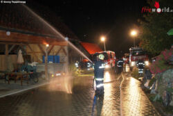 Eine sehr große Herausforderung stellte die Zubringleitung dar. Die Feuerwehren mussten von einem Fischteich bzw. von einem Hydranten in Summe eine 1.200 Meter lange Schlauchleitung zur Wasserversorgung der Tanklöschfahrzeuge aufbauen.