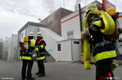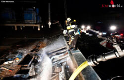 MÜNCHEN (BAYERN): In einer rund 30 x 40 Meter großen Halle, in der verschiedene fleischverarbeitende Betriebe untergebracht sind, hat sich am Nachmittag des 14. Oktober 2016 durch unbekannte Ursache das Dachgebälk entzündet.