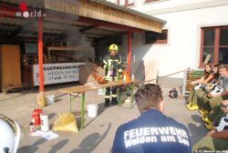 Die Themen dabei waren Flashover, Brandklassen und zugehörige Löschmittel, Leiterkunde, Wärmebildkamera sowie Ausrüstung für den Atemschutzeinsatz. Zwischendurch wurden wir zu "Einsätzen" alarmiert, die von den Jungs und Mädls zu bewältigen waren.
