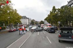 MÜNCHEN (D): Zu einem Auffahrunfall in der Nymphenburger Straße wurde die Berufsfeuerwehr München am Nachmittag des 14. Oktober 2016 alarmiert. Auf der stadtauswärts führenden Spur der Nymphenburger Straße, auf Höhe der Landshuter Allee, fuhr ein Pkw in das Stauende, der dort an der Ampel wartenden Fahrzeuge.