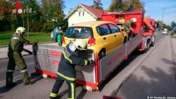 Mit Hilfe der Bergeseilwinde wurde das Fahrzeug auf das Plateau des Wechselladefahrzeuges gezogen und von der Straße entfernt. Durch den Zusammenstoß lagen einige Fahrzeugteile auf der Straße, dieses wurde von uns zusammengekehrt und zeitgleich wurde mit Hilfe von Ölbindemittel der ausgetretene Schadstoff auf der Straße gebunden. Nach rund einer dreiviertel Stunde konnte der Einsatz beendet werden und die Feuerwehr rückte wieder ins Gerätehaus ein.