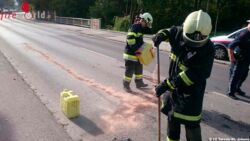 Ebenso verlor das Fahrzeug einiges an Betriebsmittel. Keine fünf Minuten nach Alarmierung rückte die Feuerwehr mit dem Tanklöschfahrzeug, dem Wechselladefahrzeug und dem Kleinrüstfahrzeug und acht Mann Besatzung zum Einsatz aus. Am Weg zum Einsatzort war bereits ein großer Rückstau in alle Richtungen zu vernehmen.