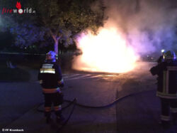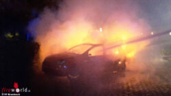 KRUMBACH (NÖ): Zu einem Pkw-Brand in der Promenade im Bereich des Sport- und Kulturzentrums wurde die FF Krumbach am 15. Oktober 2016 gerufen. Bei der Ankunft der Einsatzkräfte stand das Auto bereits in Vollbrand.