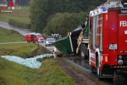 Oö: Lkw-Anhänger mit Recyclingglas bei Unfall in Ottnang am Hausruck umgestürzt