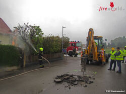 Vorsorglich wurden zum Schützen der Umgebung (Hecken, Bäume und Zäune) zwei C-Rohre in Stellung gebracht. Nach Eintreffen des Energieversorgers wurde festgestellt, dass für diesen Bereich kein Gasschieber vorhanden ist, und deshalb mit schwerem Gerät die Straße geöffnet werden muss, um an die Hauptleitung zu gelangen.
