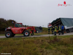 SEEBARN (NÖ): Zur Bergung eines im Fahrbahnbankett eingesunkenen LKW mit Schieflage Richtung Graben wurden die Feuerwehren Seebarn und Grafenwörth am Vormittag des 19.10.2016 nach Seebarn alarmiert. Erstes Problem vor Ort: Der aus Bulgarien stammende Lenker spricht kein Wort Deutsch.