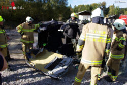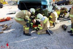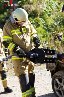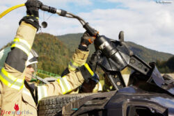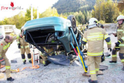 EBENAU (SBG): Unter Zuhilfenahme von schwerem Gerät und vieler neuer Techniken wurde bei der Freiw. Feuerwehr Ebenau die Personen-Rettung aus Pkws, die sich in einer extremen Lage befinden, beübt.