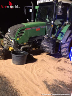 Die Feuerwehren aus Egestorf und Sahrendorf-Schätzendorf wurden alarmiert um auslaufenden Dieselkraftstoff aus dem leckgeschlagenen Tank des Treckers aufzufangen das Eindringen in die Kanalisation zu verhindern. Die beiden Fahrer wurden bei dem Unfall verletzt und von der Feuerwehr bis zum Eintreffen des Rettungsdienstes erstversorgt. Da die Durchfahrtsstraße für die Dauer der Bergungsarbeiten voll gesperrt war, musste der Verkehr umgeleitet werden. Beide Verletzten kamen in ein umliegendes Krankenhaus. Zur Unfallursache hat die Polizei die Ermittlungen aufgenommen.