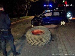 Deutschland: Zwei Verletzte und Traktor-Radverlust bei Kollision mit Pkw
