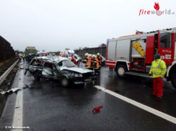 Die Feuerwehren sicherten umgehend die Einsatzstelle ab und unterstützen den Rettungsdienst bei der Befreiung des schwer verletzten Lenkers aus dem Unfallwrack. Die Lenker des Kleinbusses und des LKW blieben unverletzt.