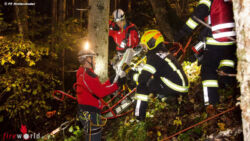 Oö: Feuerwehr und Bergrettung beüben gemeinsam schweren Verkehrsunfall im Steilgelände
