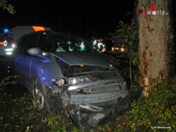ALTMÜNSTER (OÖ): Aus noch ungeklärter Ursache kam um etwa 19:40 Uhr des 20. Oktober 2016 ein Pkw, der von der Edt (Reindlmühl Bezirksstraße) talwärts fuhr, von der Straße ab und prallte in weiterer Folge gegen einen Baum.