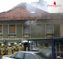Bereits auf dem Anfahrtsweg konnte von den Einsatzkräften eine Rauchsäule im Bereich des Einsatzortes wahrgenommen werden. Der Pächter des Speiselokales informierte die Einsatzleitung, dass der Brand im Bereich der Küche ausgebrochen sei und sich im Brandobjekt keine Personen mehr aufhalten. Ein Innenangriff mit einem C-Rohr wurde von der 1. Löschgruppe unter schweren Atemschutz durchgeführt. Unterdessen wurden zwei, durch den Brand unbestimmten Grades verletzte Personen bis zum Eintreffen des ÖRK durch die Einsatzmannschaft der Berufsfeuerwehr Graz betreut. Im Zuge der weiteren Erkundung wurde festgestellt, dass sich der Brand bereits über die Abluftanlage in die Dachkonstruktion eines angrenzenden Gebäudeteiles ausgebreitet hatte. Das angrenzende Flachdach musste mit einer Rettungssäge geöffnet und ein 2. C-Rohr unter schweren Atemschutz im Außenangriff vorgenommen werden. Ein 3. Atemschutztrupp wurde eingesetzt um das 1. OG und das Dachgeschoß des Gebäudes auf die etwaige Anwesenheit von Personen sowie auf Verrauchung zu kontrollieren. Es wurden keine Personen aufgefunden, jedoch mussten umfangreiche Belüftungsmaßnahmen mit mehreren Hochleistungslüftern durchgeführt werden. Nach 60 Minuten Einsatzzeit konnte „Brand Aus“ vermeldet werden.