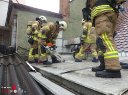 Umgehend wurde eine Löschbereitschaft – bestehend aus einem Kommandofahrzeug, zwei Löschgruppenfahrzeugen, einer Drehleiter sowie einem Vorausfahrzeug – an die Einsatzstelle in die Luthergasse alarmiert.
