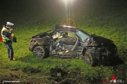 Der junge Mann war mit seinem Audi TT von der Kreisstraße BGL10 (Vachenlueg) kommend in Richtung Staatsstraße 2103 (Hadermarkt) unterwegs, als er rund 200 Meter vor der Einmündung in die Staatsstraße aufgrund nicht angepasster Geschwindigkeit auf der regennassen Fahrbahn ins Schleudern geriet und mit der Beifahrerseite in den entgegenkommenden VW-Bus eines 22-jährigen Ainringers prallte; der Audi rutsche im Anschluss über die Böschung in die angrenzende Wiese hinab.