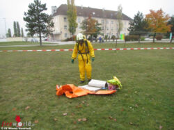 WIENER NEUSTADT (NÖ): Am Sonntag, 23. Oktober 2016, musste in Wiener Neustadt am Flugfeld ein ganzes Mehrfamilienhaus evakuiert werden. Wegen eines Chlorgasaustrittes in einer der Wohnungen mussten 14 Personen von der Feuerwehr aus dem Haus geleitet werden. Vier Personen, darunter zwei Kinder wurden verletzt. Auch eine Katze wurde von der Feuerwehr gerettet.
