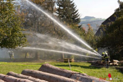 Übungsannahme war ein Brand eines landwirtschaftlichen Objekts mit vermissten Personen bei Fam. Fröller in Riedl Gemeinde Kirchschlag. Einsatzleiter Kommandant HBI Norbert Kapeller musste mit 7 teilnehmenden Feuerwehren Kronabittedt, Kirchschlag, Lichtenberg, Eidenberg, Hellmonsödt, St. Magdalena, und Geng das Übungsszenario abarbeiten. Als erste Herausforderung stellte sich eine schmale Zufahrtstraße dar, die von einem Passanten mit einem Pkw blockiert wurde.