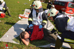 Am Einsatzort konnten die vermissten Personen (Bezirksschauspieler) relativ schnell von den Atemschutz-Trupps gerettet werden, die teilweise schwere Verletzungen vorwiesen, wie Armamputation, Verbrennungen, Abschürfungen und von Bezirks-Schminkerin Erika Göweil perfekt vorbereitet wurden. Eine weitere Herausforderung war die Löschwasserversorgung zum Objekt, bei der eine lange Zubringleitung gelegt werden musste.