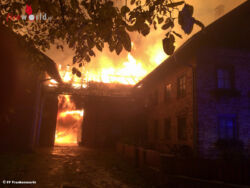 FRANKENMARKT (OÖ): In Frankenmarkt (Bezirk Vöcklabruck) ist in der Nacht auf Montag, 24. Oktober 2016 ein Bauernhof niedergebrannt. Das Feuer war gegen 2.30 Uhr entdeckt worden. Zehn Feuerwehren standen im Einsatz.