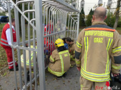 GRAZ (STMK): In den Mittagsstunden des 25. Oktober 2016 wurde die Berufsfeuerwehr Graz zu einer Menschenrettung nach Graz-Eggenberg alarmiert. Ein Kleinkind ist mit dem Kopf in einem aus Metall bestehenden Fußballtor stecken geblieben.