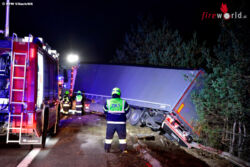 Gemeinsam mit der FF Gödersdorf wurden ausgetretener Treibstoff und Motoröl gebunden, um eine Umweltgefährdung zu vermeiden sowie die Unfallstelle umfassend ausgeleuchtet und abgesichert. Bei der Bergung des verunfallten Sattelzuges wurde die Abschleppfirma durch die Hauptfeuerwache mittels dem schweren Kranfahrzeug und dem Rüstlöschfahrzeug unterstützt.