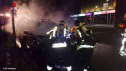 PASCHING (OÖ): Zu einem nächtlichen Brandeinsatz musste die Freiwillige Feuerwehr Pasching am Donnerstag, den 27.10.2016, um 00.27 Uhr in den Ortsteil Langholzfeld ausrücken. Laut ersten Informationen war ein Pkw in Brand geraten.