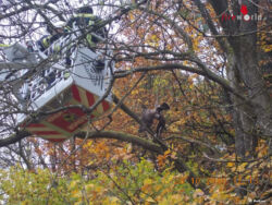 Deutschland: Rettung eines in Baumkrone verhedderten Bussards