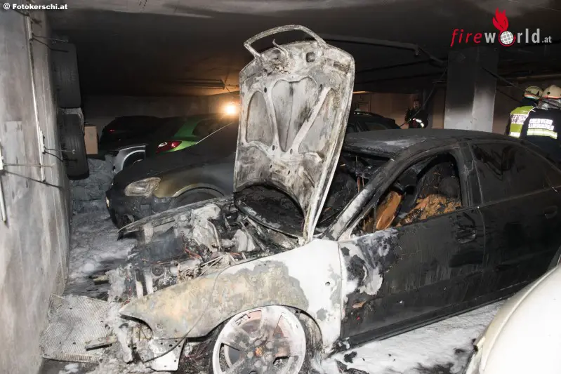 GALLNEUKIRCHEN (OÖ): In der Nacht auf Freitag, 28. Oktober 2016, ist kurz vor 2:00 Uhr in einer Tiefgarage eines Mehrparteienhauses in Gallneukirchen ein Auto aus unbekannter Ursache in Flammen aufgegangen. Das mit 24 Parteien bewohnte Haus in der Martin-Boos-Straße musste evakuiert werden.