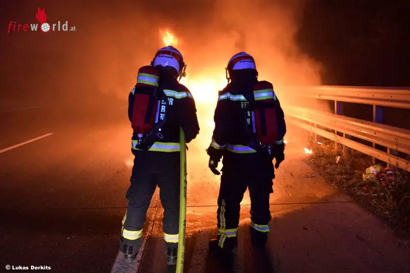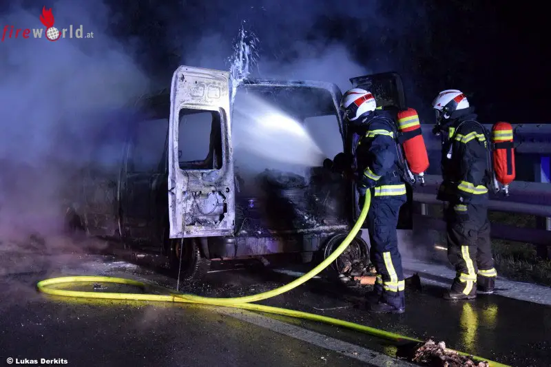 Nö: Vollbrand eines Kleintransporters auf der Südautobahn