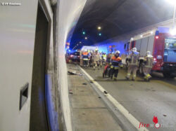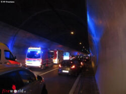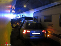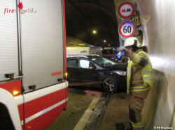 RANKWEIL (VBG): Um 15.01 Uhr des 29. Oktober 2016 wurden die Freiw. Feuerwehr Frastanz sowie die Feuerwehr Rankweil zu einem Auffahrunfall mit zwei Verletzten auf die A14 in die Mitte des Amberg-Tunnels alarmiert.