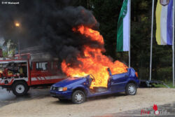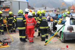 Kurz nach 15:00 Uhr folgte die zweite Vorführung der FF Mariazell. Übungsannahme war wieder ein Verkehrsunfall mit eingeklemmter Person und anschließendem Fahrzeugbrand, jedoch in Zusammenarbeit mit den Kameraden vom Roten Kreuz Mariazell.