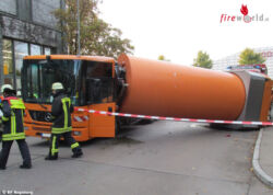 AUGSBURG (BAYERN): Kurz nach 15:00 Uhr wurden die Berufsfeuerwehr Augsburg und die Freiwillige Feuerwehr Kriegshaber am 3. November 2016 zur Lechhauser Straße gerufen. Von einem Lkw riss der der Aufbau. Der Müllcontainer rutschte vom Trägerfahrzeug und blieb neben dem Lkw liegen.
