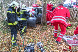 Da die Person den Unfallwagen auf Grund ihrer Verletzungen nicht mehr selbstständig verlassen konnte, wurden die Feuerwehren Obertressen und Bad Aussee zur Menschenrettung alarmiert. Der Verletzte war nicht direkt im Fahrzeug eingeklemmt, so konnte der Lenker nach der Erstversorgung durch den Notarzt ohne Einsatz des hydraulischen Bergegerätes aus dem Unfallwrack befreit werden.