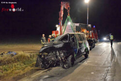 KIRCHBERG / WILD (NÖ): Am 4. November 2016 wurde die Feuerwehr Groß-Siegharts-Stadt um 01.08 Uhr von der Landeswarnzentrale mit Pager und Alarm SMS T1 zu einem Einsatz gerufen. Nach einem Unfall stand ein Kleinbus stark beschädigt quer über die Fahrbahn.