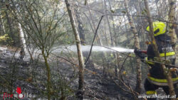 Die Löscharbeiten gingen trotz steilem und unwegsamem Gelände zügig voran, sodass ein Übergreifen auf einen dicht bewachsenen Wald verhindert werden konnte. Zusätzlich wurde auch Mehrbereichsschaummittel dem Löschwasser beigemengt um die Oberflächenspannung des Wassers zu brechen, damit dieses besser in den Waldboden eindringen konnte.