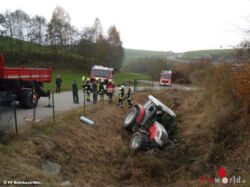ROHRBACH-BERG (OÖ): Aus ungeklärter Ursache stürzte Samstagnachmittag, 5. November 2016, in der Ortschaft Neundling ein Traktor in ein Regenwasserrückhaltbecken. Die Feuerwehr Rohrbach wurde mit stiller Alarmierung zu der Fahrzeugbergung alarmiert.