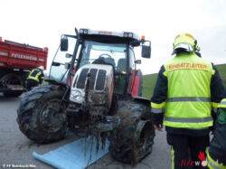 Innerhalb kurzer Zeit rückten 11 Einsatzkräfte mit dem Rüst-Lösch-Fahrzeug, dem Kranfahrzeug und dem Öl-Einsatzfahrzeug aus.Mit der Seilwinde des Rüst-Löschfahrzeuges, einer weiteren Seilwinde eines mithelfenden Landwirtes und dem Einsatz des Kranfahrzeuges konnte der verunfallte Traktor geborgen werden. Durch den Unfall flossen auch einige Liter Motoröl in das Becken aus. Die Feuerwehrkräfte konnten mit Ölbindevlies einiges an Motoröl auffangen und binden. Die Wasserrechtsbehörde wird über das Wochenende und am Montag weitere Kontrolltätigkeiten durchführen. Zur Sicherung weiterer Verunreinigung wurde das Becken abgeschiebert. Die Feuerwehr Rohrbach war mit 11 Mann und 3 Fahrzeugen ca. 3 Stunden im Einsatz.