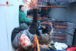 Das größte Problemstellte sicherlich die Personenrettung aus dem Bus dar, da der Bus auf der Seite lag konnten die Personen nur durch die Windschutzscheibe befreit werden. Ein zwischenzeitlicher simulierter Brand im Motorraum des Busses sorgte zwar kurzzeitig für Aufregung, der Brand wurde jedoch in kurzer Zeit wieder gelöscht.