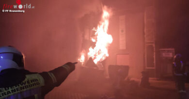 Nur etwa eine halbe Stunde später, gegen 21:07 Uhr wurden die Freiwilligen Feuerwehren aus Forst und Bruchsal zu einem Pkw-Brand auf die Autobahn BAB5 Richtung Süden alarmiert. Beim Eintreffen der ersten Einsatzkräfte, stand ein Pkw auf der mittleren Fahrspur in Folge eines Auffahrunfalls in Vollbrand. Aus bislang ungeklärter Ursache fuhr der Fahrer eines VW Golf auf ein vorausfahrendes Fahrzeug auf und schob zwei weitere Fahrzeuge ineinander. In der Folge fing der VW Golf an zu brennen.