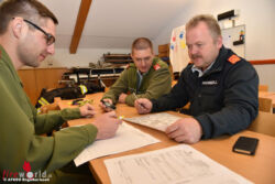 Innerhalb kürzester Zeit wurden nun verschiedene Einsätze eingespielt, welche die Einsatzkräfte nach Prioritäten zu reihen und abzuarbeiten hatten. Um den Überblick zu bewahren, musste weiters ein Lagebild angefertigt und dieses laufend aktualisiert werden. Zwischendurch mussten mehrmals weitere Einsatzkräfte oder Spezialfahrzeuge angefordert werden. Im Anschluss wurden die Arbeiten besprochen und auf eventuelle Verbesserungen und Änderungen hingewiesen. Um den echten Funkbetrieb nicht zu stören, wurde mit sogenannten Walky-Talky gearbeitet. Auch Bezirks-Feuerwehrkommandant OBR Deschberger Alfred überzeugte sich von den Leistungen der Teilnehmer.