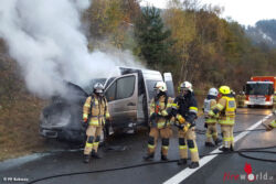 Zahlreiche Notrufe gingen über den brennenden Sprinter ein, die Feuerwehr Schwaz war bereits 8 Minuten nach der Alarmierung an der Einsatzstelle und konnte den Brand rasch löschen. Löschversuche des Lenkers blieben leider ohne Erfolg. Im Einsatz standen 5 Fahrzeuge der Feuerwehr Schwaz mit 18 Mann.