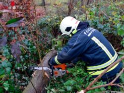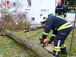 PINKAFELD (BGLD): Am Vormittag des 12. November 2016 wurde die Freiwillige Feuerwehr Pinkafeld zu einem Sturmschaden (Baum über Straße) am Firmengelände eines Baumarktes alarmiert.