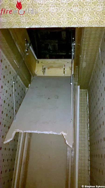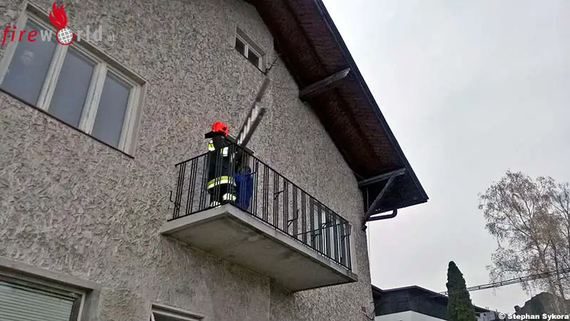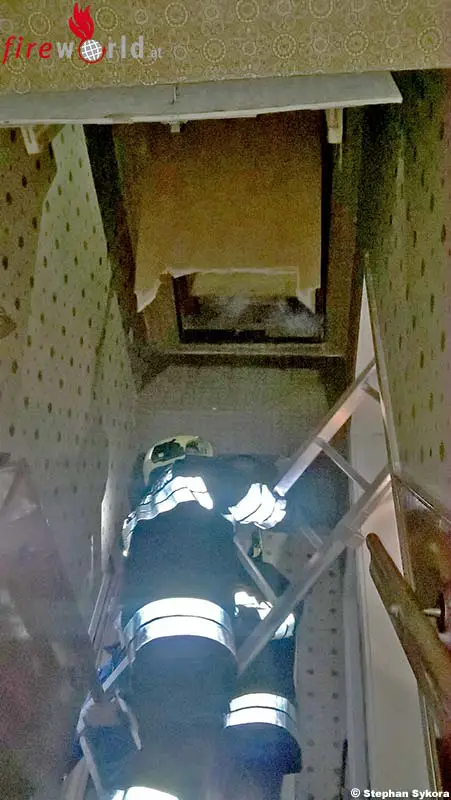 Glücklicherweise zog sich diese Person dabei nur leichte Verletzungen zu. Da die Person am Dachboden wegen der kaputten Leiter keine Möglichkeit mehr hatte, diesen zu verlassen, setzte die Maklerin den Feuerwehr-Notruf in der BAZ Baden ab, woraufhin die FF St. Veit/Tr. alarmiert wurde. Auf Grund der engen Platzverhältnisse im Gang und im Stiegenhaus wurde die zweiteilige Steckleiter über den Balkon ins Obergeschoß vorgetragen und anschließend beim Dachbodeneinstieg in Stellung gebracht um so der Person das sichere Verlassen des Dachbodens zu ermöglichen.