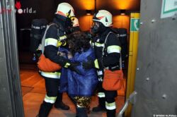 Nach der Erstversorgung wurden diese entweder bis zu 300 Stufen nach oben getragen oder mittels Schienen-Rollwagen die rund 1000m bis zum Tunnelportal verbracht. Mittels Seilzugsystemen wurde dazu Feuerwehrausrüstung in den Tunnel gehoben, genauso wie die Löschwassereinspeisung unter Druck gesetzt wurde. Mannschaftstransportfahrzeuge der Feuerwehr sorgten für den Abtransport der Unverletzten Personen.