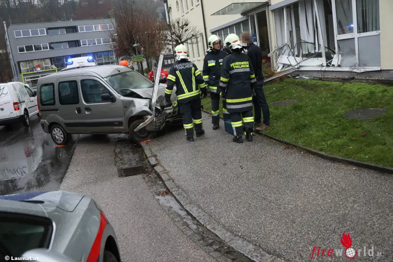 Oö: Auto durchschlug bei Verkehrsunfall in Thalheim bei Wels Fassade eines Büros