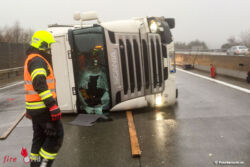 ST. FLORIAN (OÖ): Zu einem Lkw-Unfall ist es Mittwochnachmittag, 16. November 2016, auf der Westautobahn bei St. Florian (Bezirk Linz-Land) in Fahrrichtung Wien gekommen. Der Fahrer hat auf der regennassen Fahrbahn aus unbekannten Gründen die Kontrolle über den Lkw verloren.