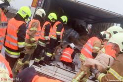 Oö: Lkw-Unfall auf der Westautobahn bei St. Florian → Feuerwehr lädt Zement um