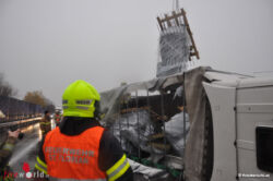 Infolgedessen ist das Fahrzeug umgestürzt. Der schwerverletzte Unfalllenker konnte von der Rettung befreit und ins Krankenhaus gebracht werden. Die geladenen Zementsäcke mussten von der Feuerwehr händisch weggebracht werden. Aufgrund der Aufräumarbeiten musste die Westautobahn gesperrt werden.
