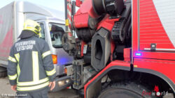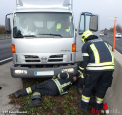 Nachdem die Feuerwehrmänner die Lenkung provisorisch repariert hatten, konnte der Klein-LKW im Auftrag der Polizei von der Autobahn geschleppt und gesichert abgestellt werden.