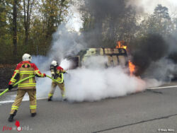 Schweiz: Lieferwagen auf der A6 bei Kapellen in Vollbrand